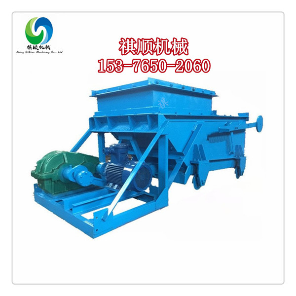 K型給料機由機架、底板(給料槽)、傳動平臺、漏斗、閘門、托輥組成,當電機開動后經(jīng)彈性聯(lián)軸器,減速機、曲柄連桿機構(gòu)拖動傾斜5度的底板,在輥上作直線往復(fù)運動,把煤或其它磨琢性小,粘性不大的松散粒狀,粉狀物料從給料設(shè)備中均勻地卸到受料設(shè)備中