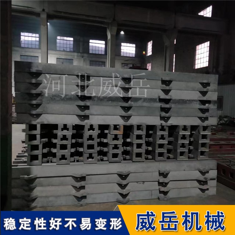 材料檢驗:地平鐵是保障安裝質(zhì)量的關鍵。選擇強度鑄鐵材質(zhì),如HT250或HT300,其抗拉強度分別可達250MPa和300MPa以上,確保在長期重載下不變形。到貨后,使用硬度計抽檢地平鐵表面硬度,需達到HB170-240。同時,檢查外觀是否有砂眼、氣孔、裂紋等問題,通過磁粉探傷或探傷儀對關鍵部位進行探傷檢測,確保材料內(nèi)部質(zhì)量可靠。