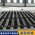 材質(zhì)技術(shù)要求:優(yōu)先選用HT300灰鑄鐵或QT500-7球墨鑄鐵,HT300抗拉強度≥300MPa、硬度180-250HBW,能承受長期重載而無塑性變形;QT500-7沖擊韌性≥7J/cm2,適合高頻振動的設備(如大型電機試驗臺)。材質(zhì)需經(jīng)“自然時效12個月+人工時效300℃×10小時”處理,內(nèi)應力殘留量≤50MPa,避免后期因應力釋放導致精度漂移。