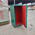 外體是采用6mm防爆鋼板,內(nèi)置10mm絕木板,內(nèi)部鋪設(shè)抗震防靜電阻燃?xì)。因移?dòng)火工品柜是放置在室外露天使用,為增強(qiáng)其防盜作用,柜體的鎖具采用的是GA機(jī)械雙鎖,即兩把機(jī)械鎖和一把三位密碼機(jī)械轉(zhuǎn)盤(pán)鎖