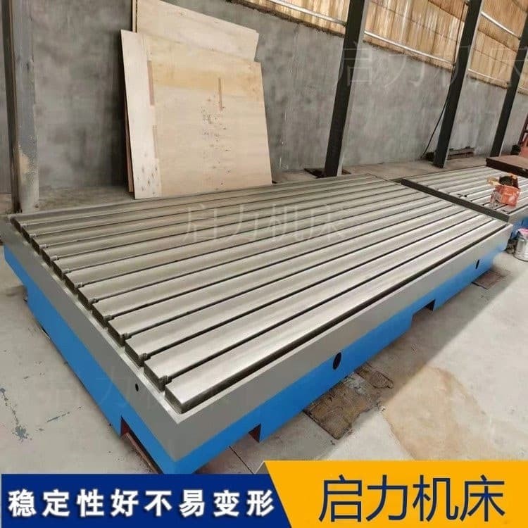 確保水平校準(zhǔn)達(dá)標(biāo):安裝時(shí)需用0.01mm/m精度的電子水平儀,在臺(tái)面縱橫方向各取6個(gè)測(cè)量點(diǎn)(含電機(jī)固定區(qū)域),確保水平度誤差≤0.03mm/m。若水平度超標(biāo),電機(jī)運(yùn)行時(shí)會(huì)產(chǎn)生偏心振動(dòng),可能導(dǎo)致地平鐵局部受力過(guò)載。校準(zhǔn)后需用強(qiáng)度螺栓(M20及以上)按對(duì)角順序緊固支撐腳,扭矩值按廠家規(guī)定(一般為300-500N・m),并在支撐腳與地面間隙注入環(huán)氧樹(shù)脂膠,防止后期松動(dòng)。規(guī)避安裝環(huán)境風(fēng)險(xiǎn):地平鐵安裝場(chǎng)地需遠(yuǎn)離積水、油污區(qū)域,避免鑄鐵材質(zhì)銹蝕;若在潮濕環(huán)境(如濕熱試驗(yàn)間)使用,需在臺(tái)面鋪設(shè)防腐蝕墊(如3mm厚),并定期噴涂防銹油(每月1次)。同時(shí),場(chǎng)地地面承載能力需≥地平鐵總載荷的1.5倍,防止地面沉降導(dǎo)致地平鐵傾斜。