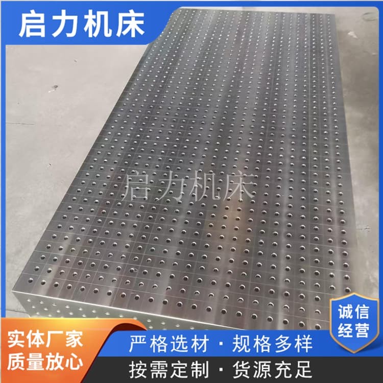 基準(zhǔn)孔+定點(diǎn)芯軸技術(shù):平臺(tái)臺(tái)面預(yù)設(shè)高精度基準(zhǔn)孔(精度H7級(jí)),工件對(duì)應(yīng)位置設(shè)計(jì)定點(diǎn)孔,焊接時(shí)只需將工件定點(diǎn)孔套入平臺(tái)定點(diǎn)芯軸,即可實(shí)現(xiàn)自動(dòng)找正,橫向、縱向偏差≤±0.05mm。焊接挖掘機(jī)斗桿時(shí),傳統(tǒng)方式需調(diào)整3-5次才能控制錯(cuò)邊量≤1.5mm,用平臺(tái)直接套芯軸,錯(cuò)邊量穩(wěn)定≤0.8mm;