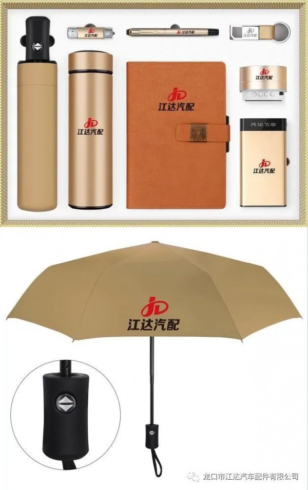 公司為女神們獻上的禮品包括:雨傘、數(shù)顯水杯、U盤、MP3音響、移動電源等8件套精品套餐,所有禮品印有江達汽配LOGO標識。