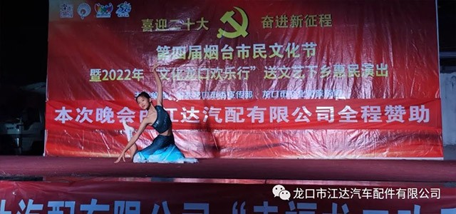 2022年9月6日晚,蘭高鎮(zhèn)柳家村文化廣場熱鬧非凡,以“喜迎二十大 奮進新征程”為主題的第四屆煙臺文化節(jié)暨2022年“文化龍口歡樂行”送文藝下鄉(xiāng)惠民演出活動在蘭高鎮(zhèn)柳家村隆重舉行,本次活動由龍口市委宣傳部、龍口市文化旅游局主辦,龍口市江達汽車配件有限公司全程贊助。