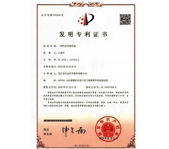 隨著江達(dá)公司向著高質(zhì)量方向不斷邁進(jìn)的同時(shí),在專利保護(hù)上,公司已申請國家發(fā)明專利8項(xiàng),實(shí)用新型專利23項(xiàng),對現(xiàn)有公司重要產(chǎn)品及設(shè)備進(jìn)行產(chǎn)權(quán)保護(hù)。其中,快速散熱高速剎車盤、高強(qiáng)度雙片剎車盤、高清潔式防腐制動盤等重量級產(chǎn)品已獲得山東省企業(yè)技術(shù)創(chuàng)新獎(jiǎng)一等獎(jiǎng),企業(yè)及產(chǎn)品知名度不斷擴(kuò)大。