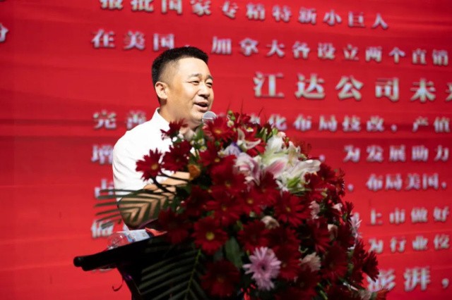 全體嘉賓在觀看江達(dá)公司宣傳片后,江達(dá)公司董事長(zhǎng)針對(duì)上半年主要工作以及未來五年主要發(fā)展規(guī)劃發(fā)表激情洋溢地講話,未來五年,江達(dá)公司將一步一個(gè)腳印,圍繞主業(yè)深耕國(guó)際、國(guó)內(nèi)市場(chǎng),以發(fā)展企業(yè),回報(bào)社會(huì)、幸福員工為目標(biāo),腳踏實(shí)地努力實(shí)現(xiàn)新跨越。