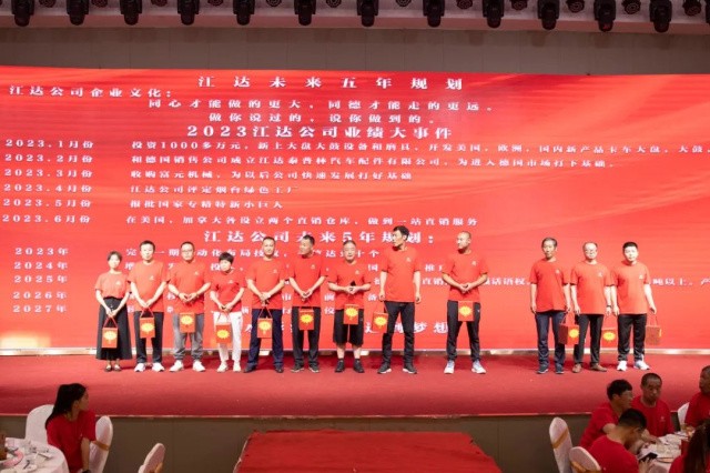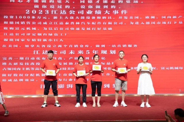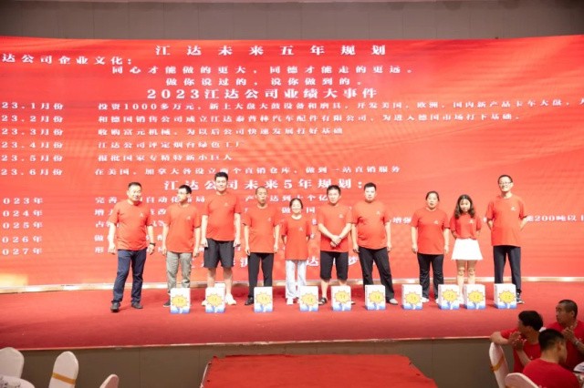 7月16日下午17:00,龍口市江達(dá)汽車配件有限公司在同德利酒店大廳隆重召開2023年度半年感恩總結(jié)表彰會(huì)及下半年產(chǎn)值提升攻堅(jiān)會(huì),出席本次大會(huì)主要嘉賓有鎮(zhèn)黨委政府領(lǐng)導(dǎo)魏克義書記、于麗鎮(zhèn)長(zhǎng)等政府主要領(lǐng)導(dǎo)以及企業(yè)員工500多名歡聚一堂。 會(huì)議在喧騰的鑼鼓聲中開場(chǎng),震天的鑼鼓敲出了江達(dá)人的激情,敲出了對(duì)未來發(fā)展的信心和希望。