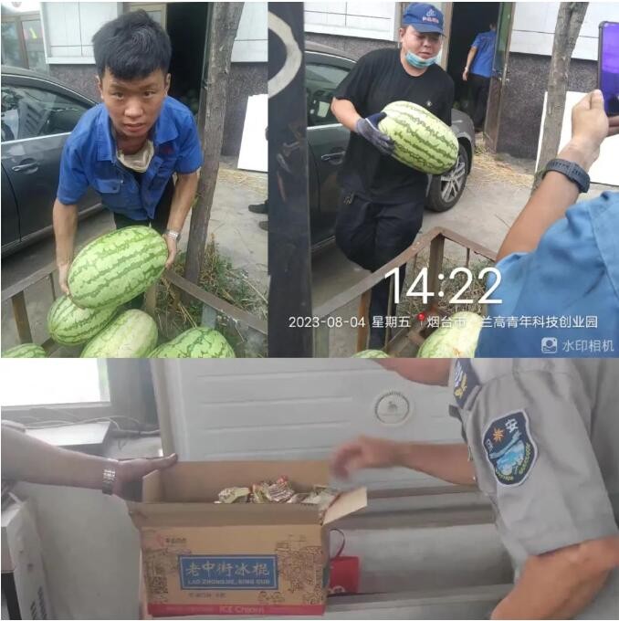 圖為:為員工發(fā)放各種降暑物品