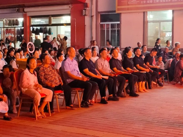 魏書記、??偱c村民一起觀看演出