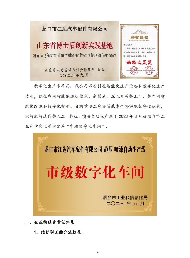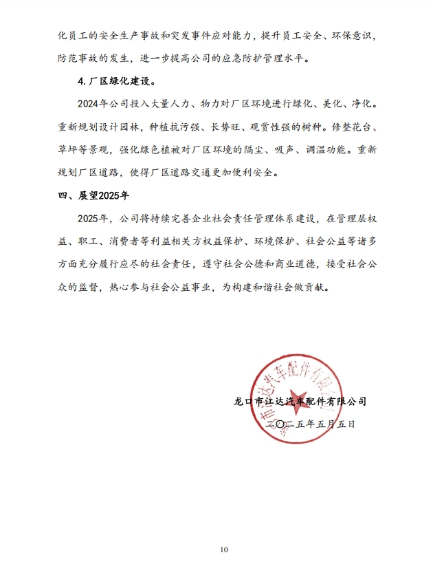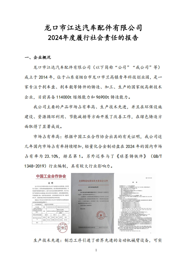 龍口市江達汽車配件有限公司2024年度履行社會責(zé)任的報告