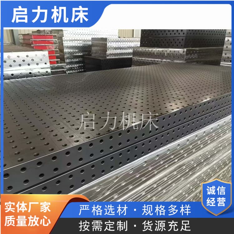 基準(zhǔn)孔+定點(diǎn)芯軸技術(shù):平臺(tái)臺(tái)面預(yù)設(shè)高精度基準(zhǔn)孔(精度H7級(jí)),工件對應(yīng)位置設(shè)計(jì)定點(diǎn)孔,焊接時(shí)只需將工件定點(diǎn)孔套入平臺(tái)定點(diǎn)芯軸,即可實(shí)現(xiàn)自動(dòng)找正,橫向、縱向偏差≤±0.05mm。焊接挖掘機(jī)斗桿時(shí),傳統(tǒng)方式需調(diào)整3-5次才能控制錯(cuò)邊量≤1.5mm,用平臺(tái)直接套芯軸,錯(cuò)邊量穩(wěn)定≤0.8mm;